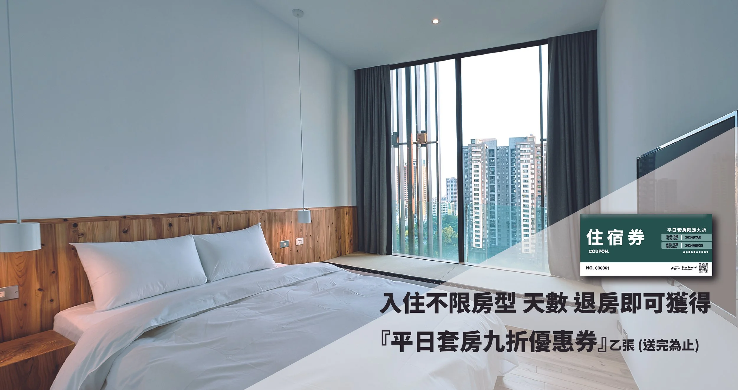 『平日套房九折優惠券』乙張 (已發放完畢,請於8/29前使用)