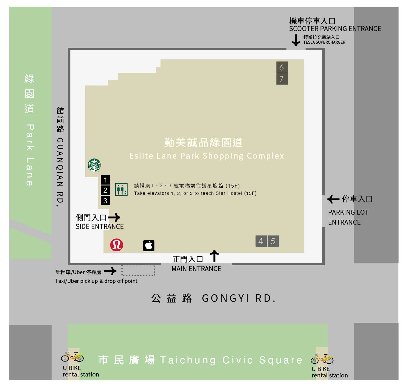 ▾ The parking lot is shared with Eslite Lane Park Shopping Complex, and is